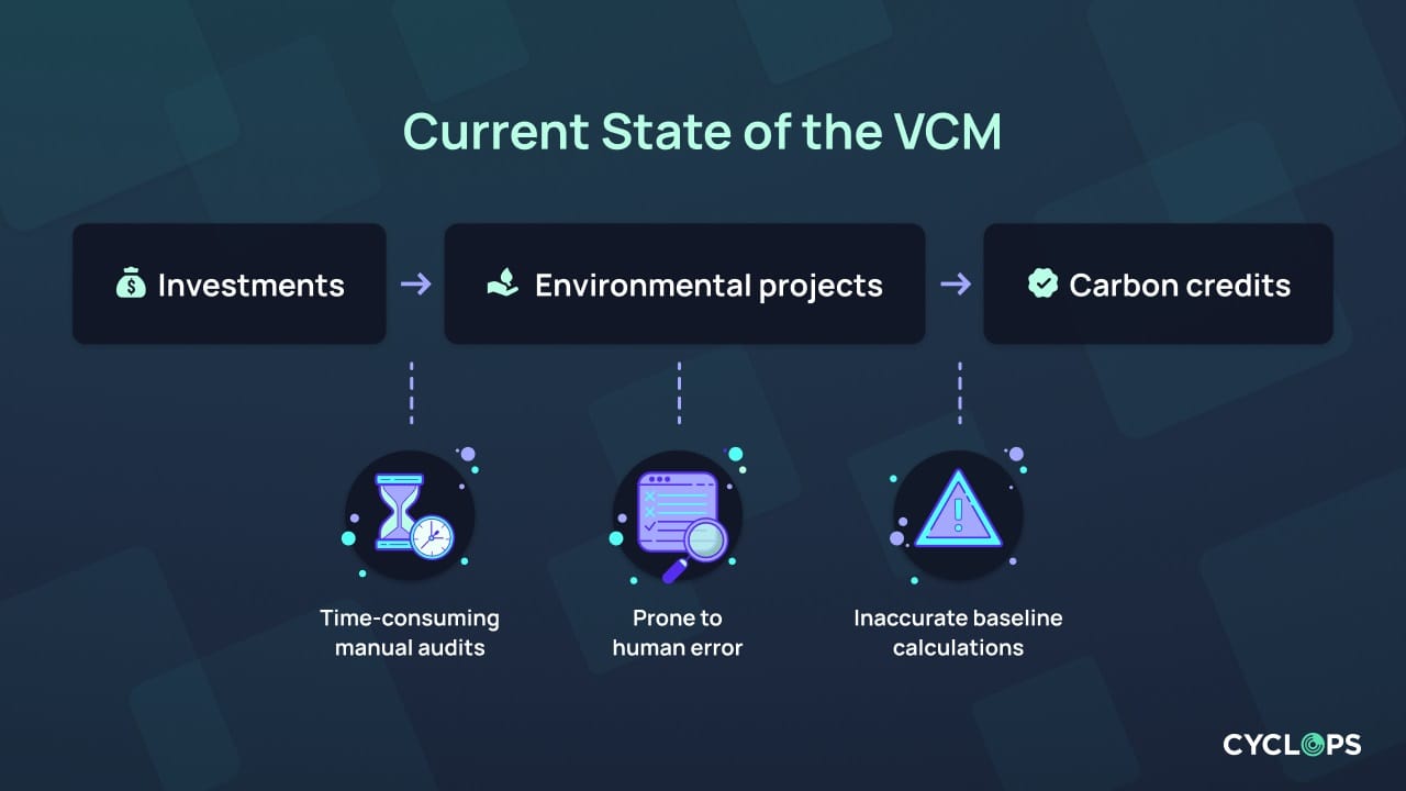 Traditional methodologies employed in the VCM have been fraught with limitations. For one, they predominantly rely on manual audits, which are time-consuming, limited in areas covered, expensive, and susceptible to human biases and errors. In addition, these conventional approaches often hinge on human-led checks and intermittent site visits, offering only sporadic snapshots rather than continuous oversight. This sporadic nature extends the verification timeline and can introduce assessment variability, causing potential discrepancies in data interpretation and reporting standards, often resulting in inaccurate baseline calculations and leading to overcrediting, ultimately contributing to a confidence crisis.