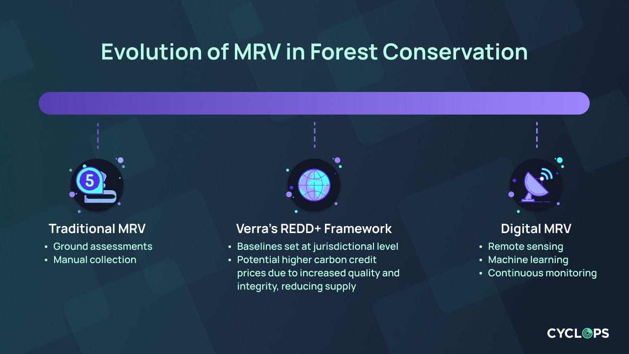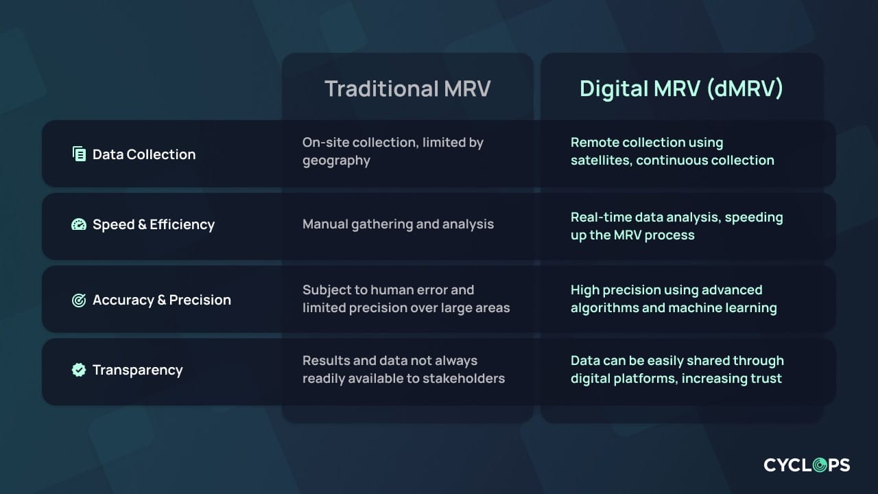 This is where Digital MRV, fortified by state-of-the-art technologies, steps in. The essence of Digital MRV is to ensure the integrity of each carbon credit produced. By leveraging technologies such as remote sensing, machine learning, and geospatial intelligence, Digital MRV offers an oversight mechanism for projects that is both meticulous and transparent (World Economic Forum, 2022).